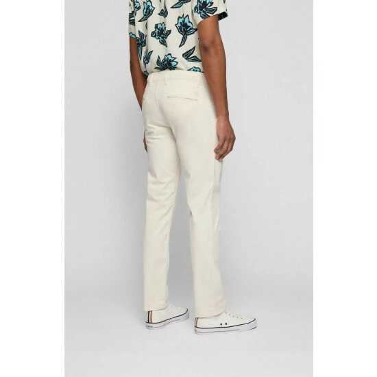 Made from overdyed satin stretch with soft touch and intensive colours. Designed with comfort stretch and high sustainable content by cotton made of Africa. Complete with double belt loops for small and big belts.